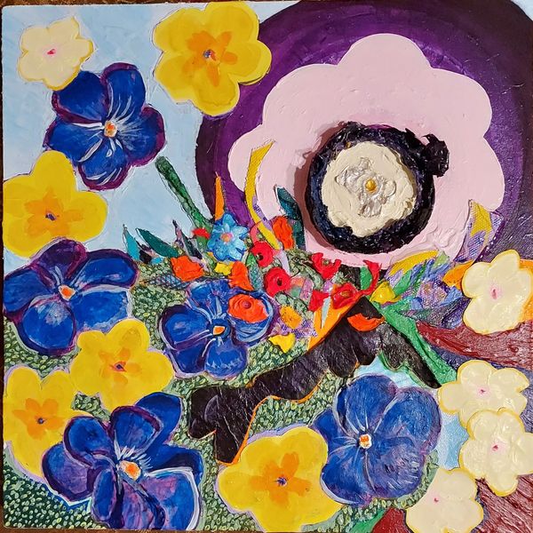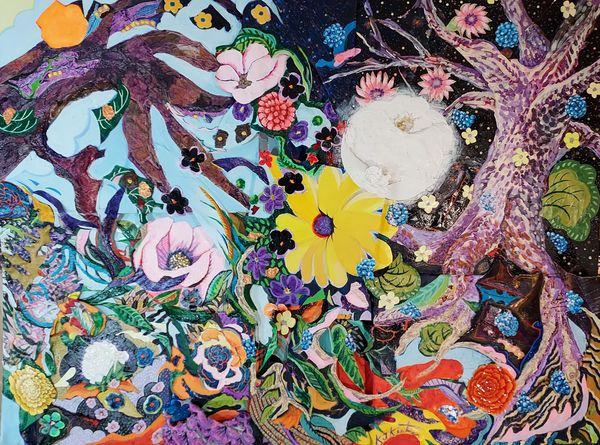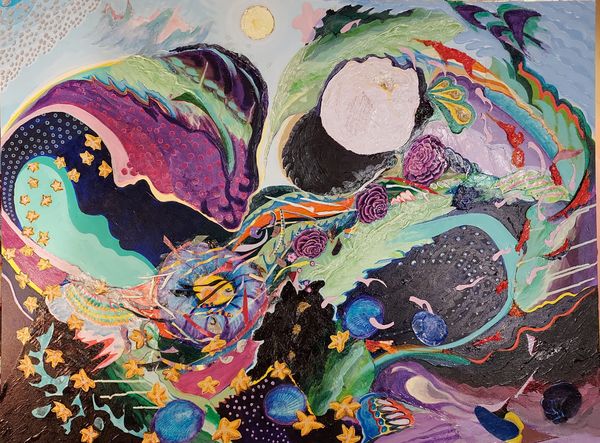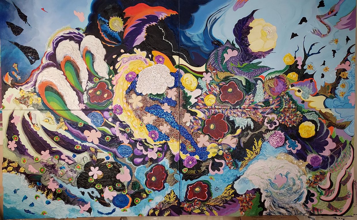 This pic is the main piece of my display at the Beacon, 814 Elm St. Manchester, NH. Called, "Sea," it is 5ft. X 8ft, painted on four 30" X 48" canvases for easy transport. This will continue on display to the end of January 2026. On the Events at ARGH page you can find more info about the making of this piece.